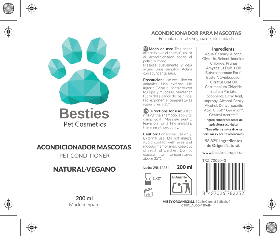 Ingredients: Aqua, Cetearyl Alcohol, Glycerin, Behentrimonium Chloride, Prunus Amygdalus Dulcis Oil, Butyrospermum Parkii Butter*, Cymbopogon Citratus Leaf Oil, Cetrimonium Chloride, Sodium Phytate, Tocopherol, Citric Acid, Isopropyl Alcohol, Benzyl Alcohol, Dehydroacetic Acid, Citral**, Geraniol**, Geranyl Acetate**. *Ingrediente procedente de agricultura ecológica. **Ingrediente natural de los perfumes y aceites esenciales. 98,82% ingredientes de origen natural.